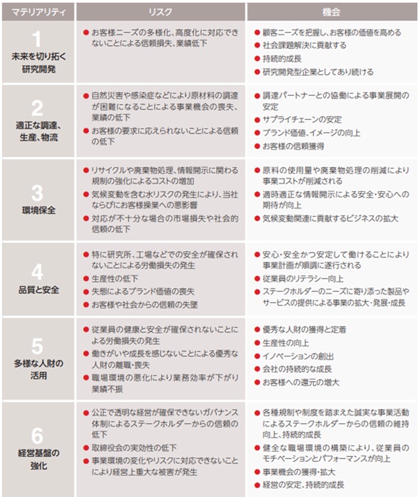 | 気候変動問題への対応 | TCFD提言に沿った情報開示の強化 | 2025年2月に、「移行」による変化の機会についての洗い出し他、公開内容を増やし、ホームページに掲載 | 社会の持続的な成長のため、地球環境問題に真摯に取り組む | |